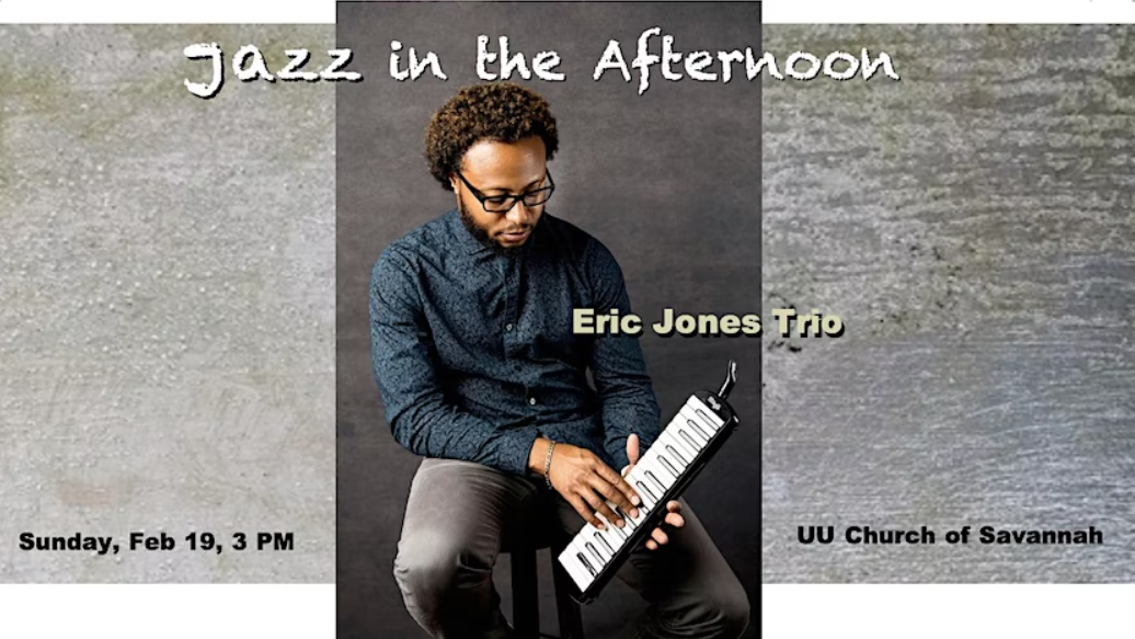 Join us Sunday, February 19th for Jazz in the Afternoon with the Eric Jones Trio. Eric Jones, Marc Chesanow, and Xavier Breaker playing in the beautiful jewel box Sanctuary!